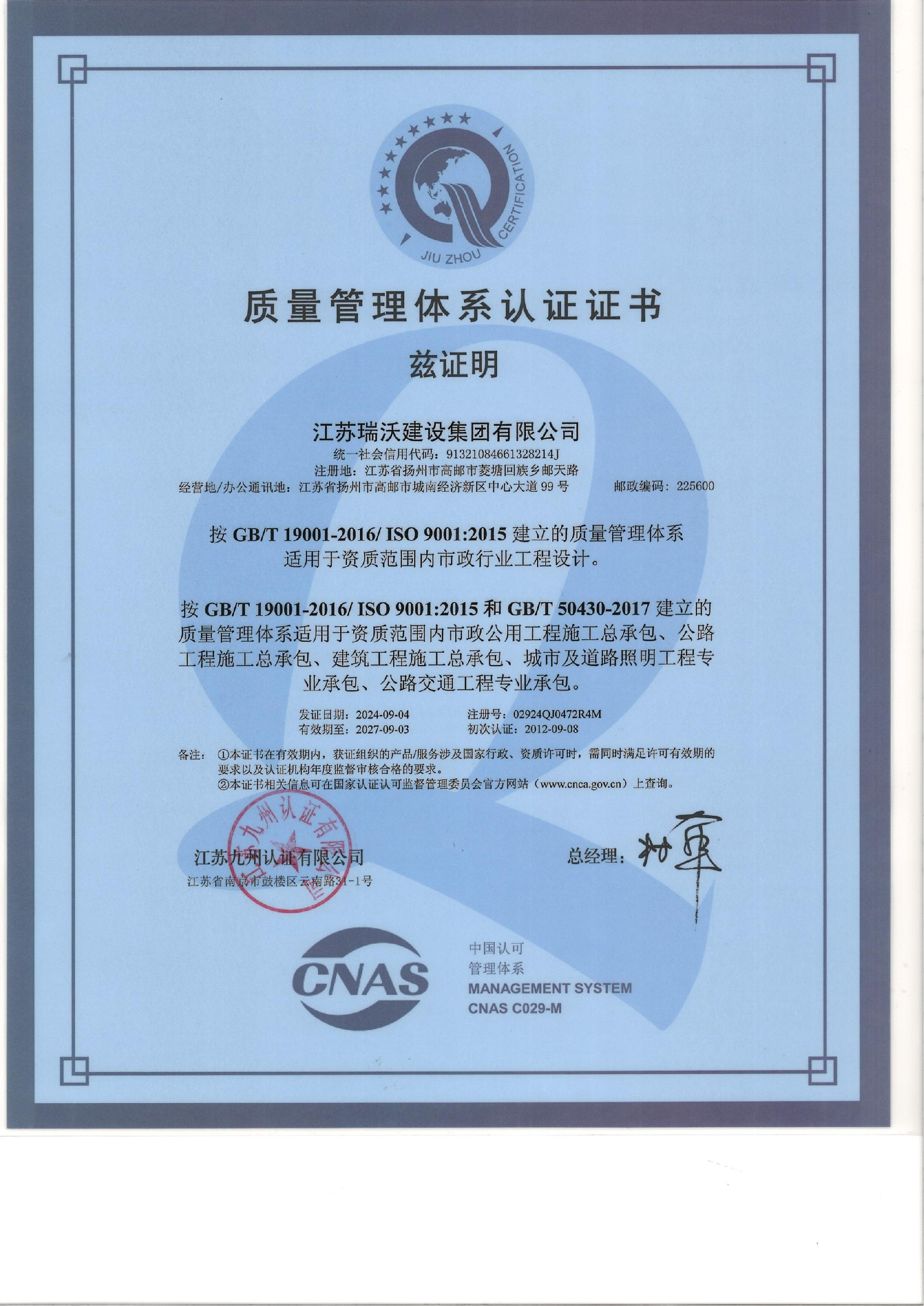 江蘇瑞沃建設(shè)集團(tuán)有限公司成立于2007年,是一家以市政、交通工程建設(shè)為主導(dǎo),集房屋建筑、交通安全設(shè)施、城市道路照明工程、電力工程、隧道工程、航道工程及投融資為一體的綜合性企業(yè)。企業(yè)注冊資本60000萬元,現(xiàn)有各類技術(shù)人員580人,其中中、高級以上人員498人,注冊類人員268人,一、二級建造師166人。公司榮獲“江蘇省建筑業(yè)優(yōu)秀企業(yè)”、“江蘇省五一勞動獎(jiǎng)狀”,連續(xù)多年被評為“揚(yáng)州市先進(jìn)企業(yè)”、“江蘇省建筑業(yè)百強(qiáng)企業(yè)”,連續(xù)八年蟬聯(lián)百強(qiáng)企業(yè)基礎(chǔ)設(shè)施類第一名。